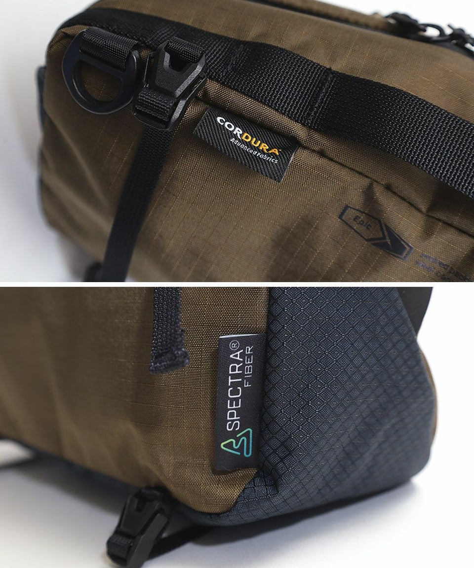 CORDURA210DナイロンDIARIPとスペクトラRIPを組み合わせ、さらに裏面にFINETEXと呼ばれる防水透湿加工を施し、強度と機能性を追求したオリジナルファブリックを使用。