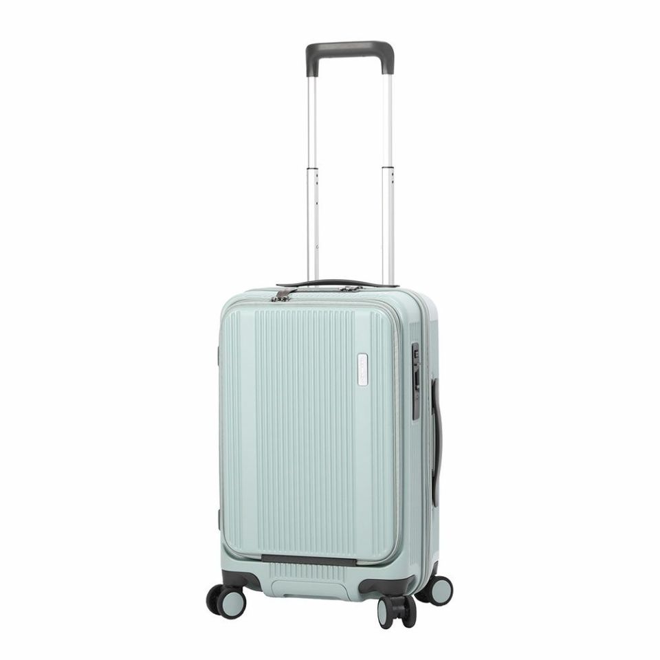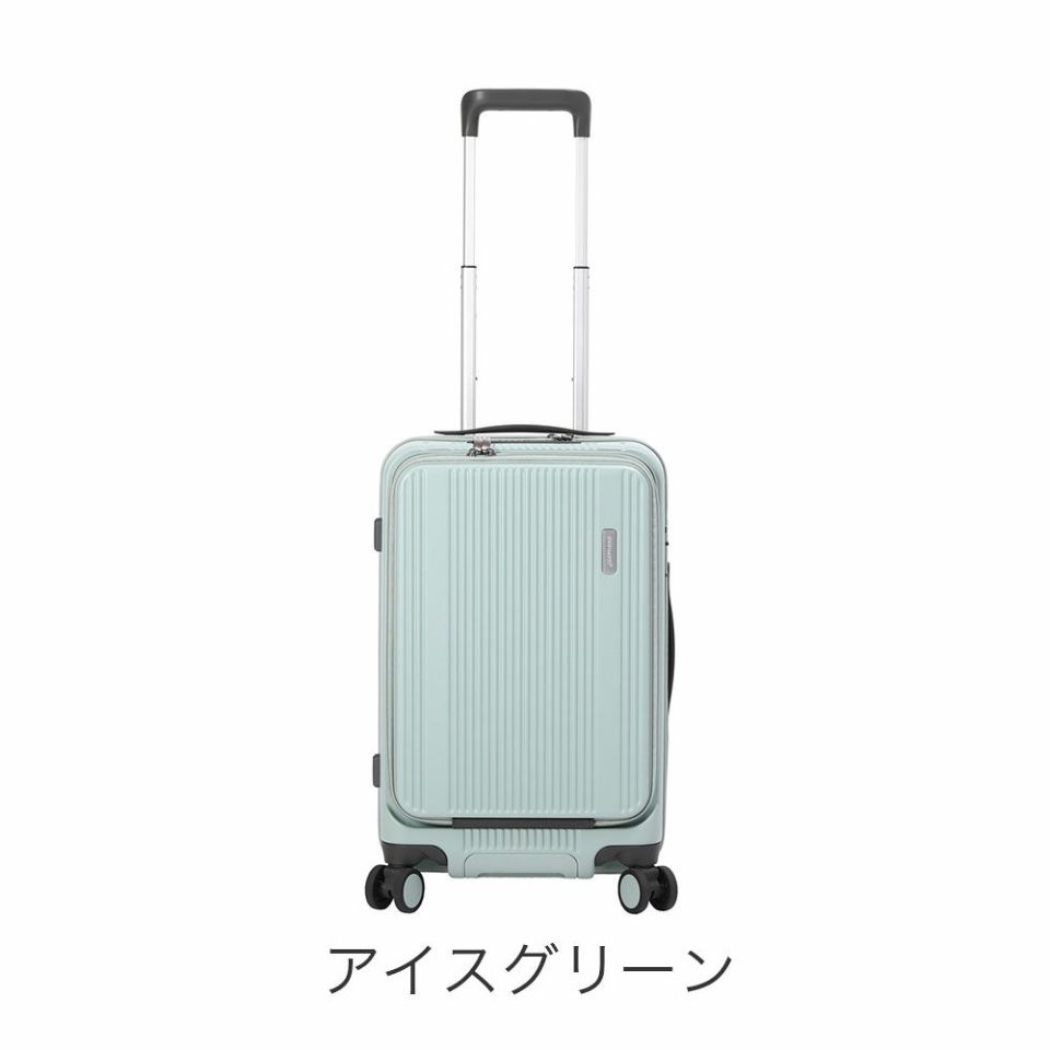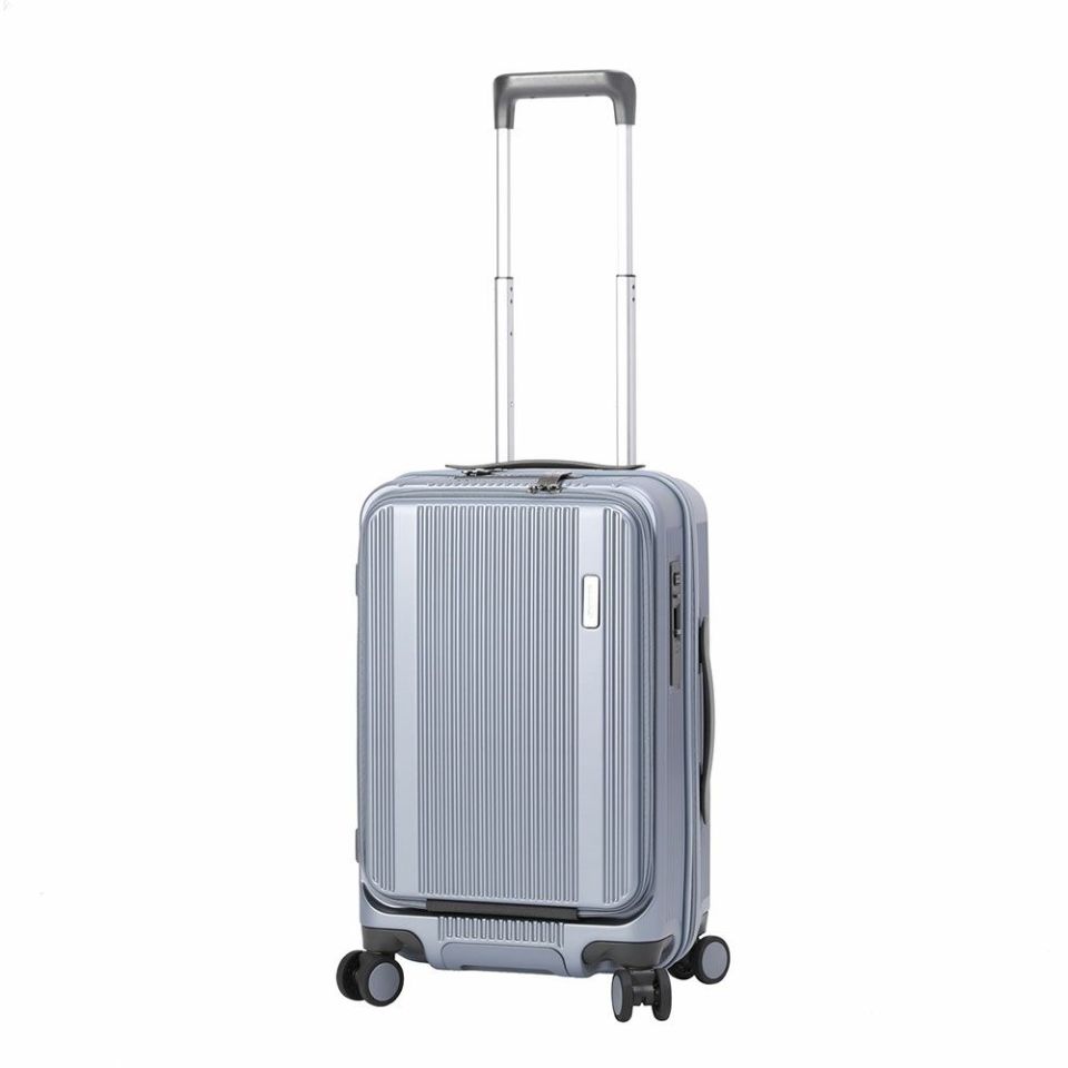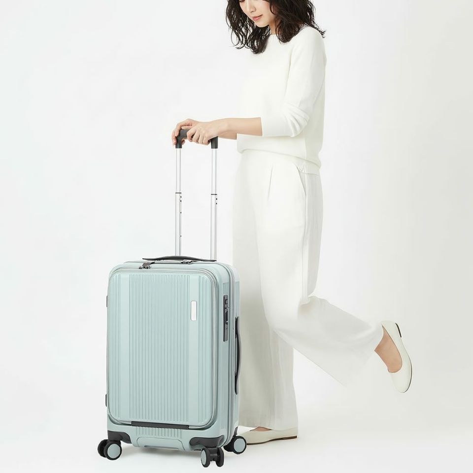 強度と軽さを両立したポリカーボネート100%を使用。傷が目立ちにくい縦リブデザインで、旅行先でも安心して使える耐久性を確保。