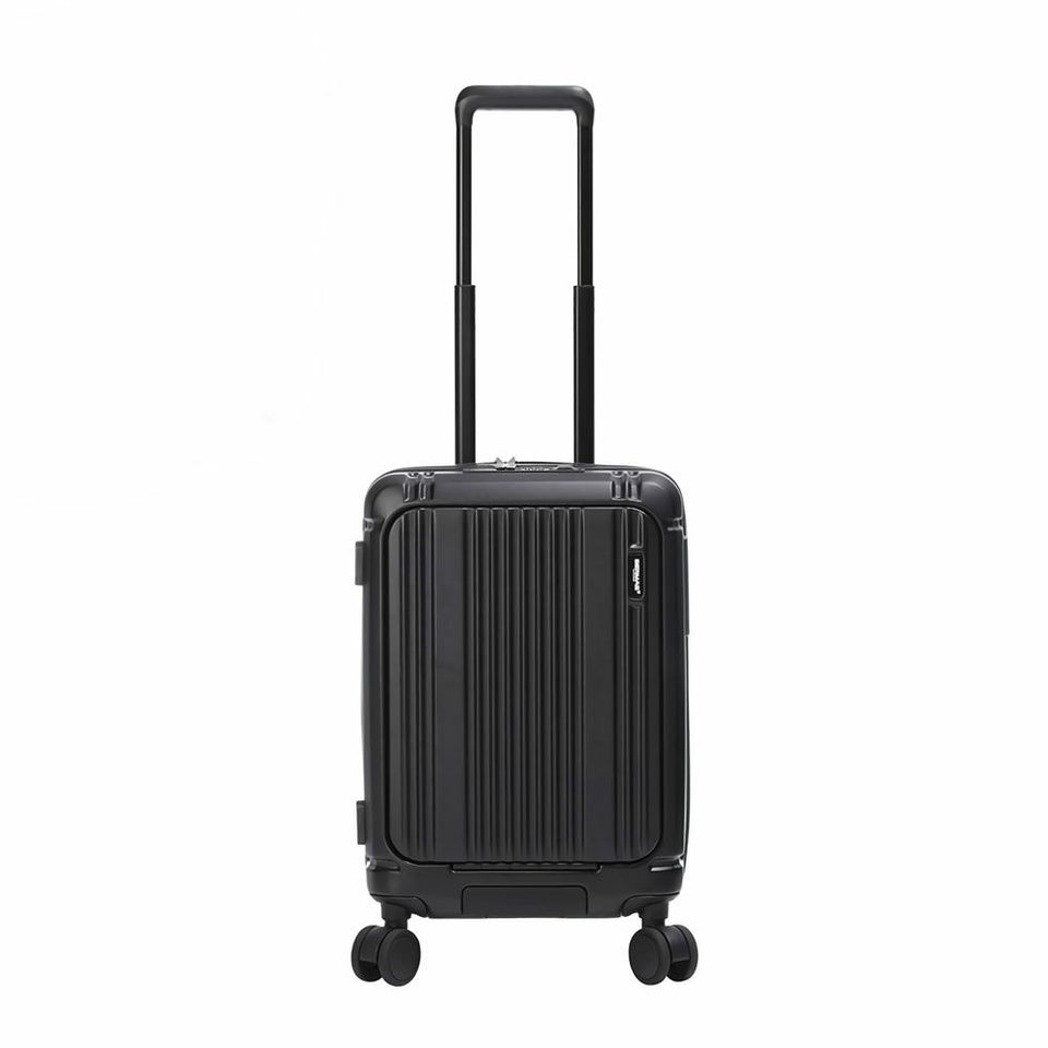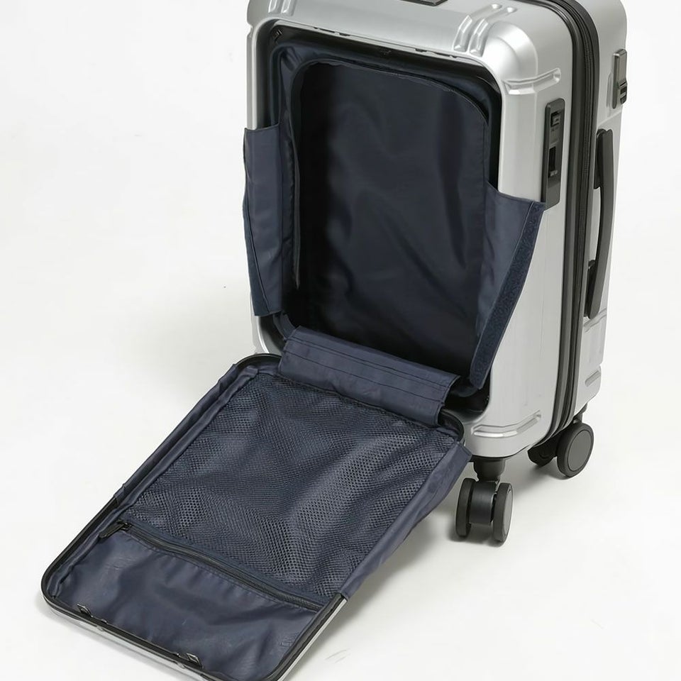 新機構のフロントパネルはボタンひとつで素早くオープン。ファスナーを開ける手間がなく、立ったまま荷物の出し入れができるため、移動中のストレスを大幅に軽減します。
