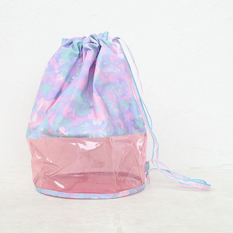 ライラックノスタルジックフラワー柄のプールバッグ。