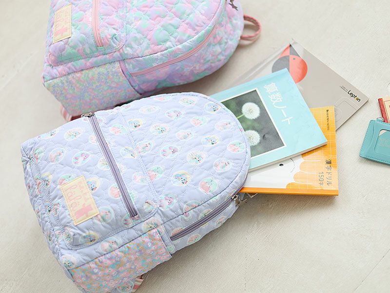 ふかふかのキルティング素材のファスナータイプのリュックサック。