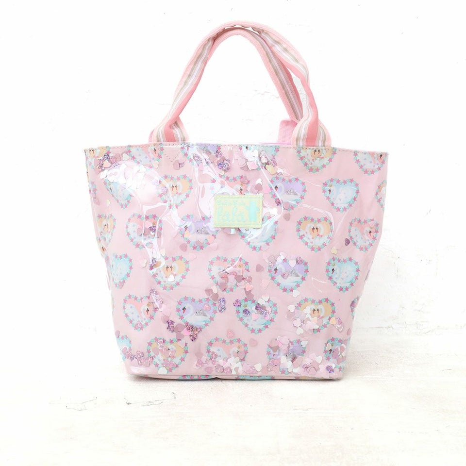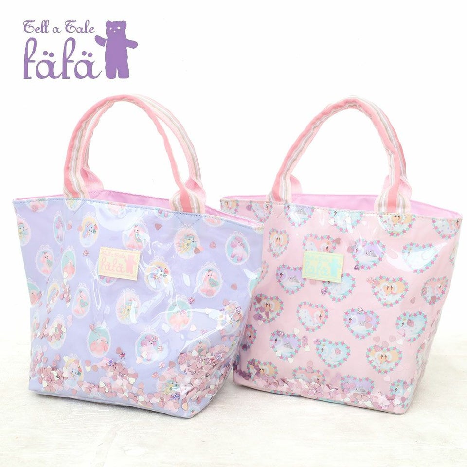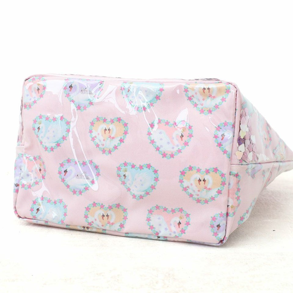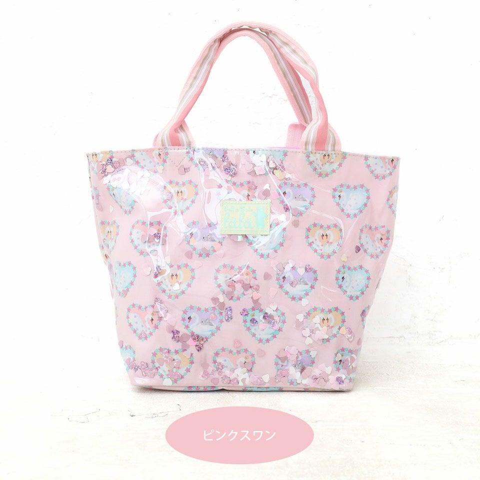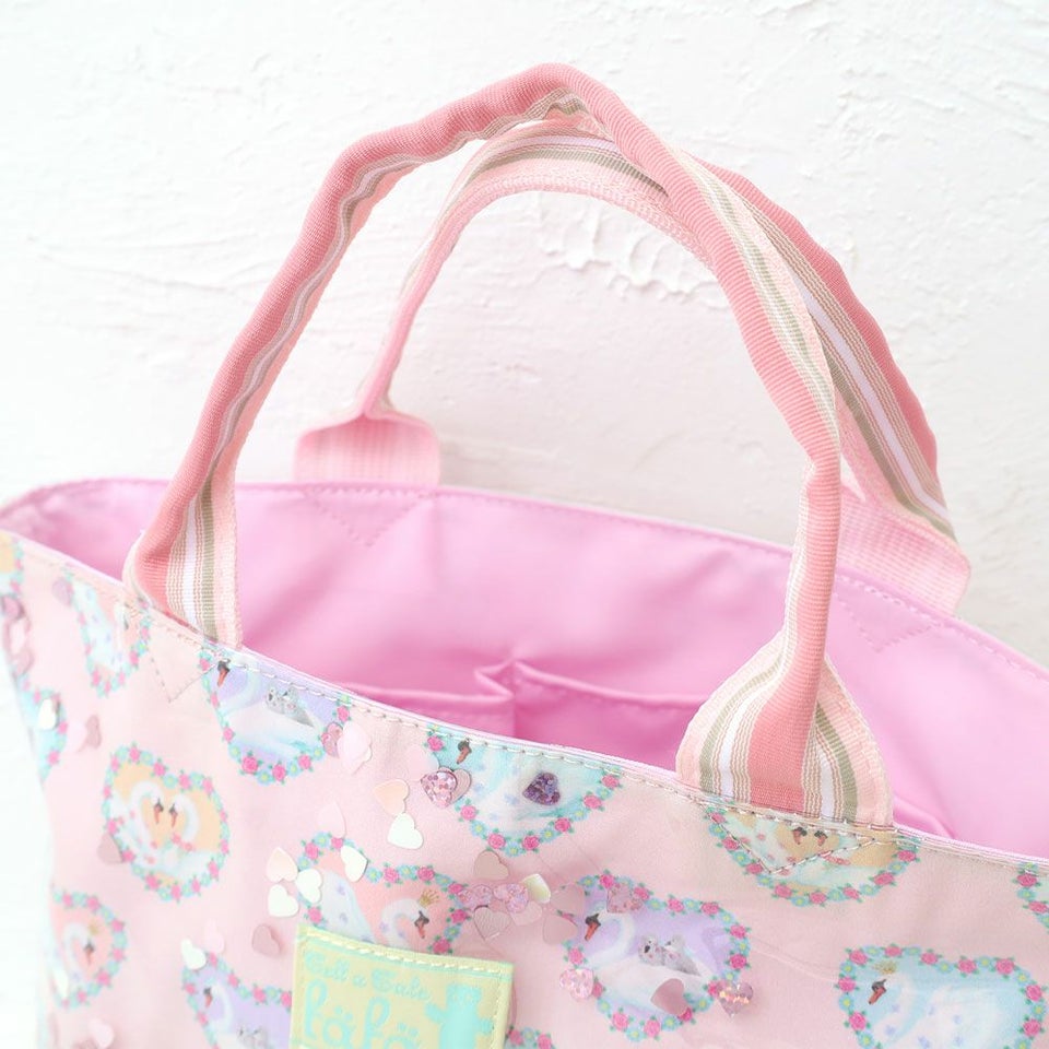 fafa PELIA | スパンコール入りトートバッグ ピンクスワン ラベンダープードル