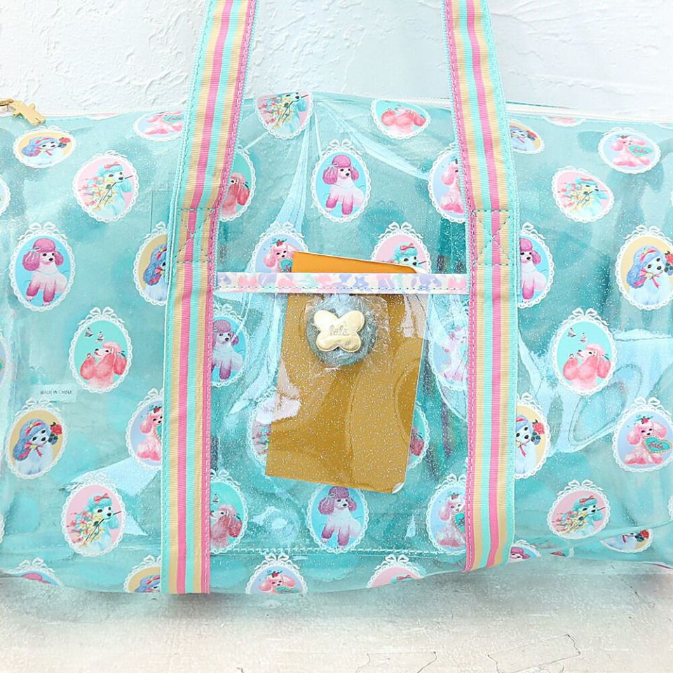 fafa フェフェ 全面クリアのラメ入りPVC素材の総柄が可愛いドラム型プールバッグ