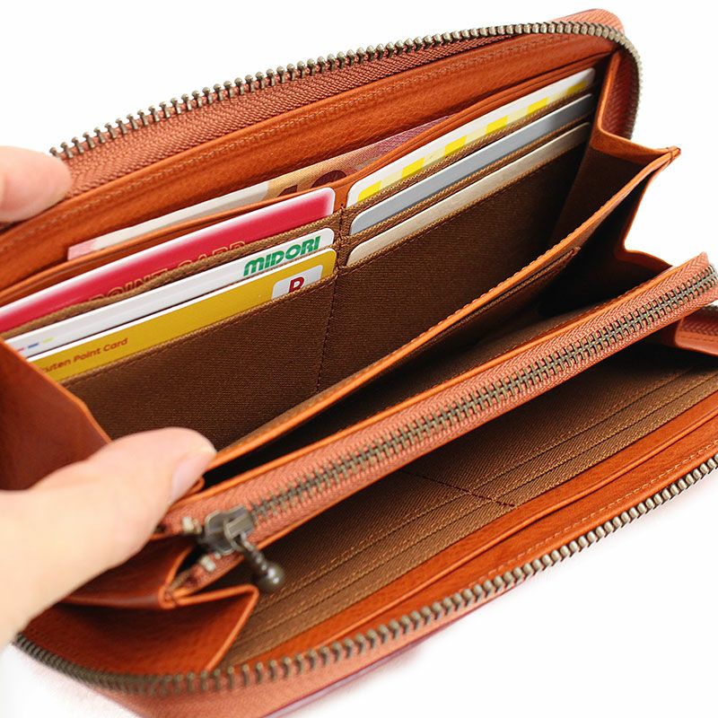 高品質なレザーを使用した収納力抜群のラウンドファスナー長財布