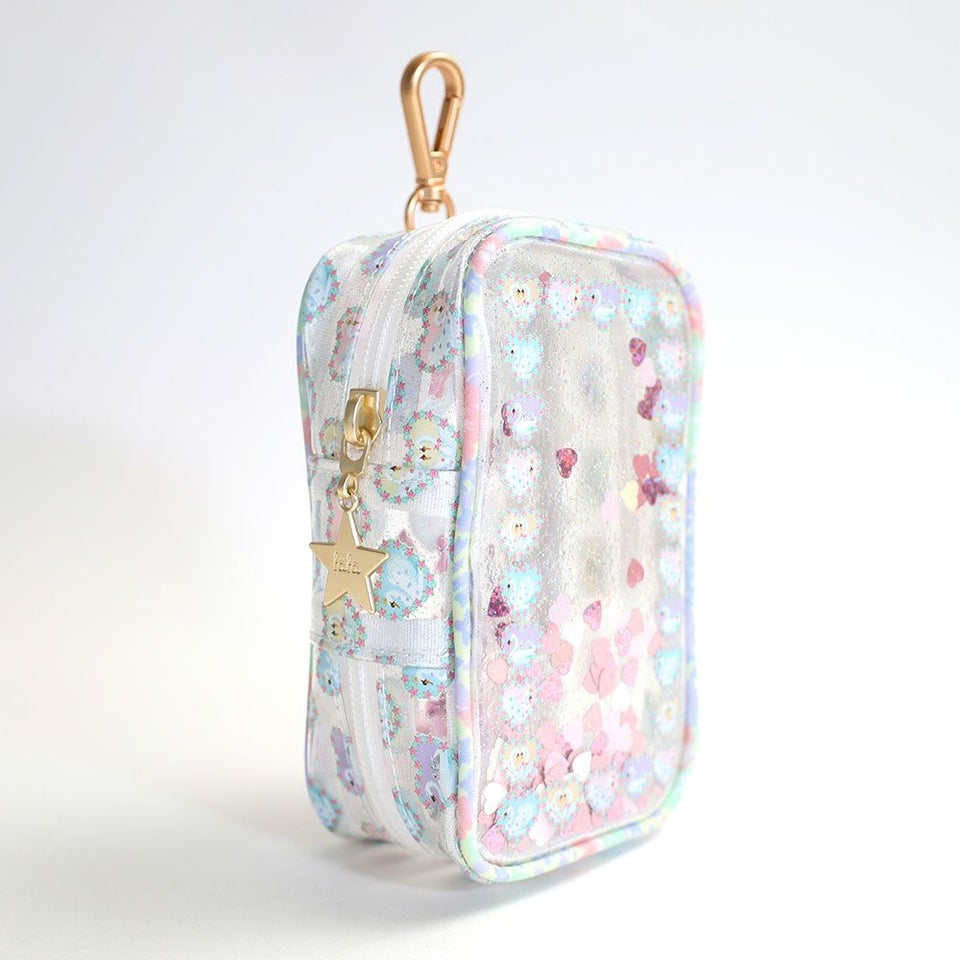 透明PVC素材にラメとスパンコールをあしらい、お気に入りのぬいぐるみや小物を可愛く見せながら収納できちゃう。持ち物を“魅せる”楽しさが広がります。