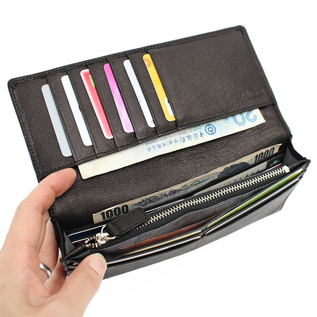 カードポケットとフリーポケットを豊富に設けた使い勝手の良いつくりの長財布。 口の大きなファスナー式の小銭入れも収納力抜群です。 ビジネスシーンはもちろんのことカジュアルスタイルにも調和する人気アイテムです。