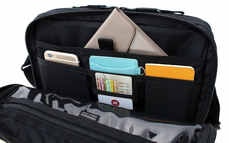 シンプルなルックスながらも、豊富な収納を誇る機能性の高さが魅力で、全型PCなどのモバイル機器の収納が可能な仕様となっています。
