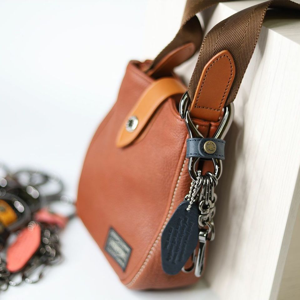 光沢のあるニッケル金具が高級感を演出。存在感のあるレザータグがアクセントになり、ギフトとしても喜ばれるデザインです。