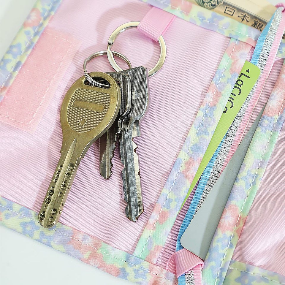 キーリング付きだから鍵や定期券も一緒に収納可能。小さなウォレットひとつで、おでかけ準備がスムーズに整います。