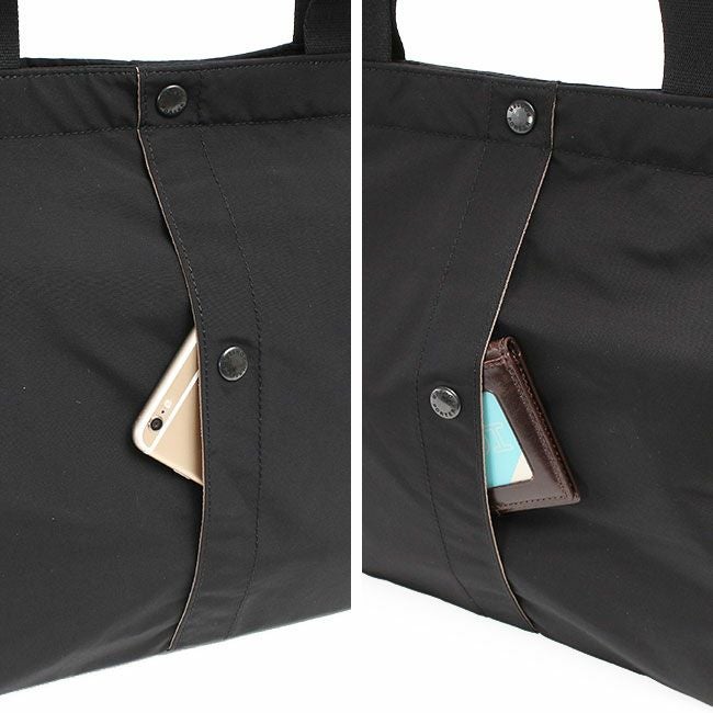 デザインポイントにもなっている前胴と背胴のポケットはマグネット式。頻繁に出し入れするスマートフォンやパスケースなどの収納に適しています。