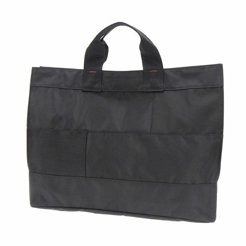 A3サイズに対応した大き目のトートバッグです。収納部はマチをたっぷりと設けた作りになっているため、ペットボトルやポーチなどの厚みのあるものも収納できます。内部にはファスナーポケットを装備し、お財布など使用頻度の高い小物の管理に配慮しています。