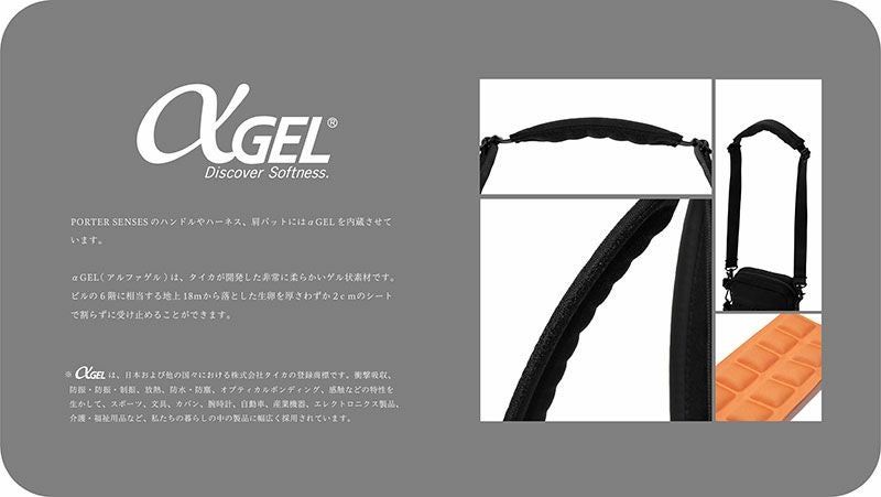 柔らかな触りごこちの多機能素材「αGEL(アルファゲル)」※をハンドルやハーネス、肩パットに内蔵しました。重さによってかかる圧力を分散し、疲れやストレスを和らげます。
