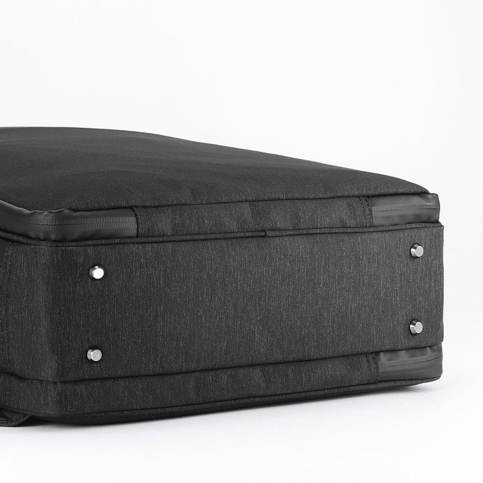 内部に水が浸透しにくいPVC加工を裏面に施した、ナイロンポリエステル素材を採用しました。