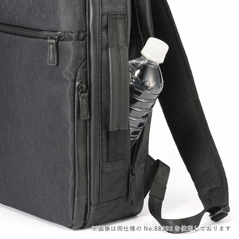 左右には小物が出し入れしやすいクイックラウンドポケットもあり、機能的なガジェタブルヘザーシリーズのバッグパック。