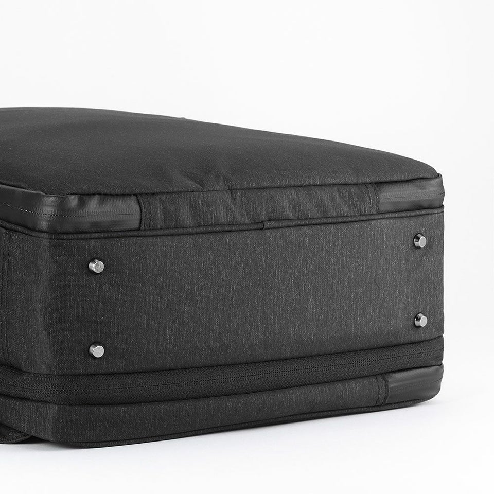 内部に水が浸透しにくいPVC加工を裏面に施した、ナイロンポリエステル素材を採用しました。