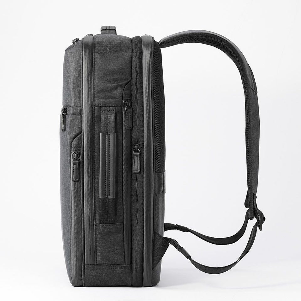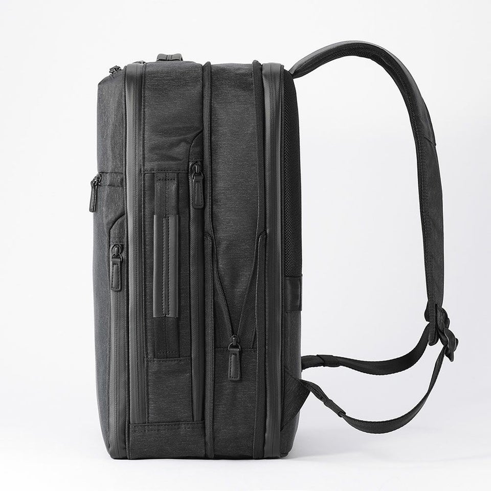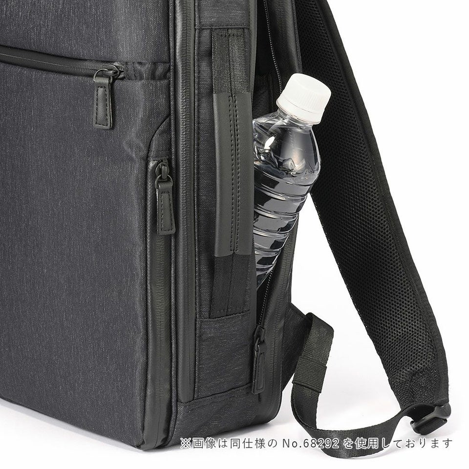 左右には小物が出し入れしやすいクイックラウンドポケットもあり、機能的なガジェタブルヘザーシリーズのバッグパック。