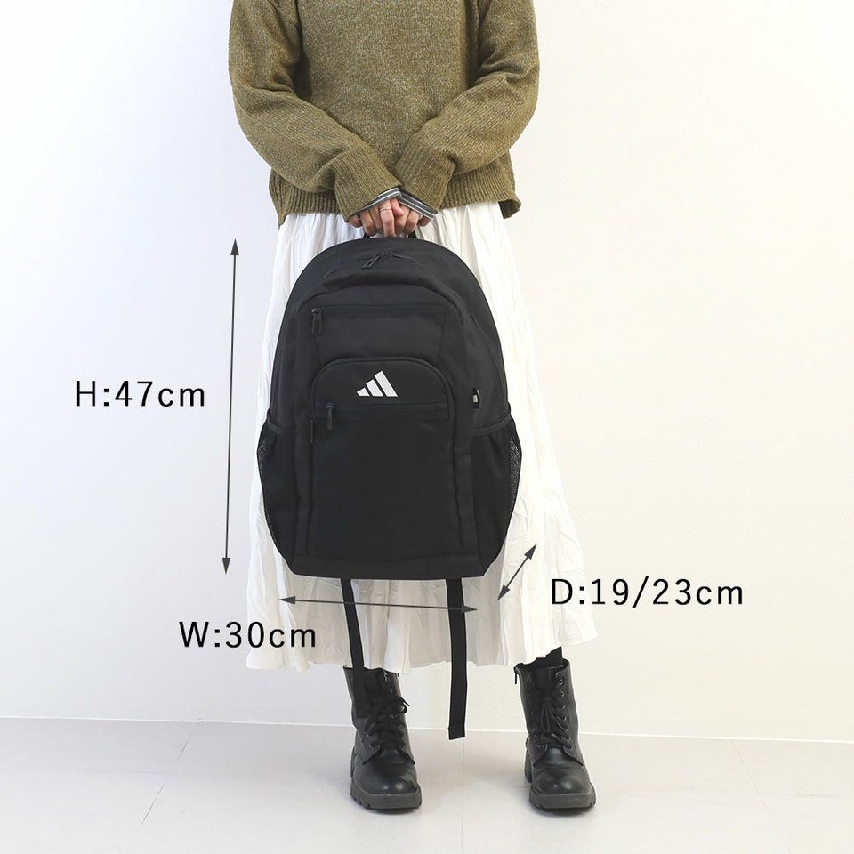 荷物の量に応じてマチ幅を広げ、容量の拡張が可能で、通学・部活にも便利な大容量サイズです。