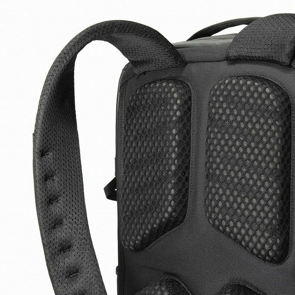 背面とショルダーハーネスに通気性を持たせた構造で、夏場の長時間使用でも快適さをキープ。