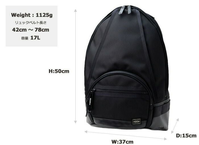 サイズ:約W37cm×H50cm×D15cm リュックベルト長さ:約42cm-78cm 容量:17L