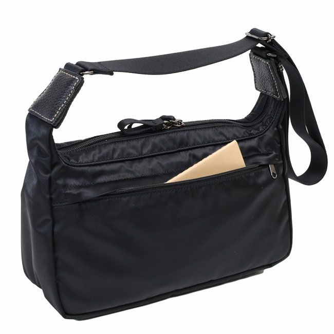 身の回りのものがしっかり入るちょうどいいサイズで、旅行などのセカンドバッグなどに便利です。