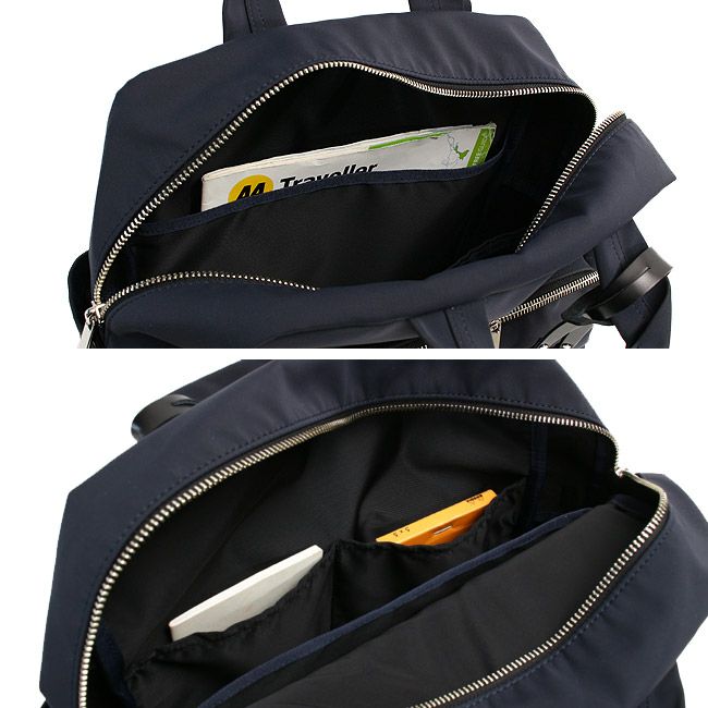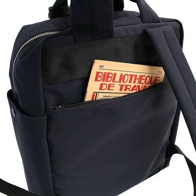 2WAYデイパックは左右にペットボトルや折り畳み傘が収納できるポケット、また背面にもファスナー付きのポケットを備えた収納力の高い機能的なモデルです。A4サイズ対応。