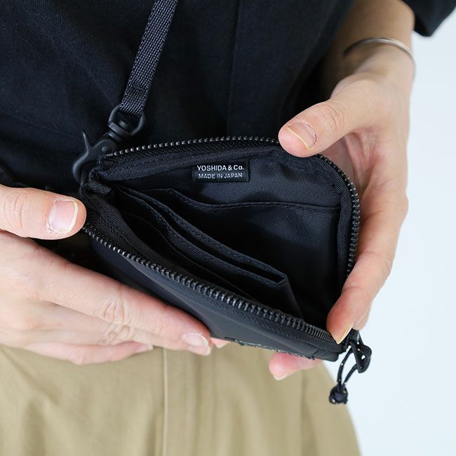 ショルダーストラップとして使えるウォレットコードとスクリューロック式のカラビナが付属し、