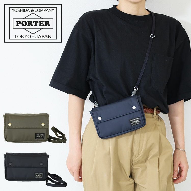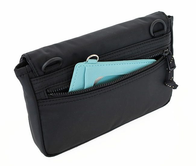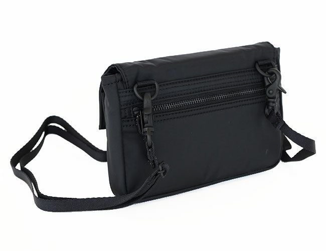 スマートフォンなどの小物の収納も可能なショルダーポーチです。内装にカード収納やファスナーポケットも備えているため、ウォレットのようにご使用いただけます。外装のファスナーポケットにはワイヤレスイヤホンも収納できます。