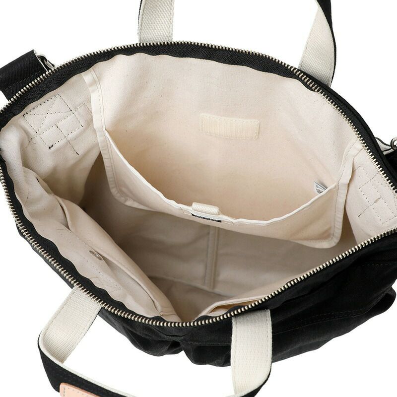 デニムパンツのポケットなどに用いられるスレーキをモチーフにした内装には、軽量で視認性に優れた生成色の11号帆布を使用しています。