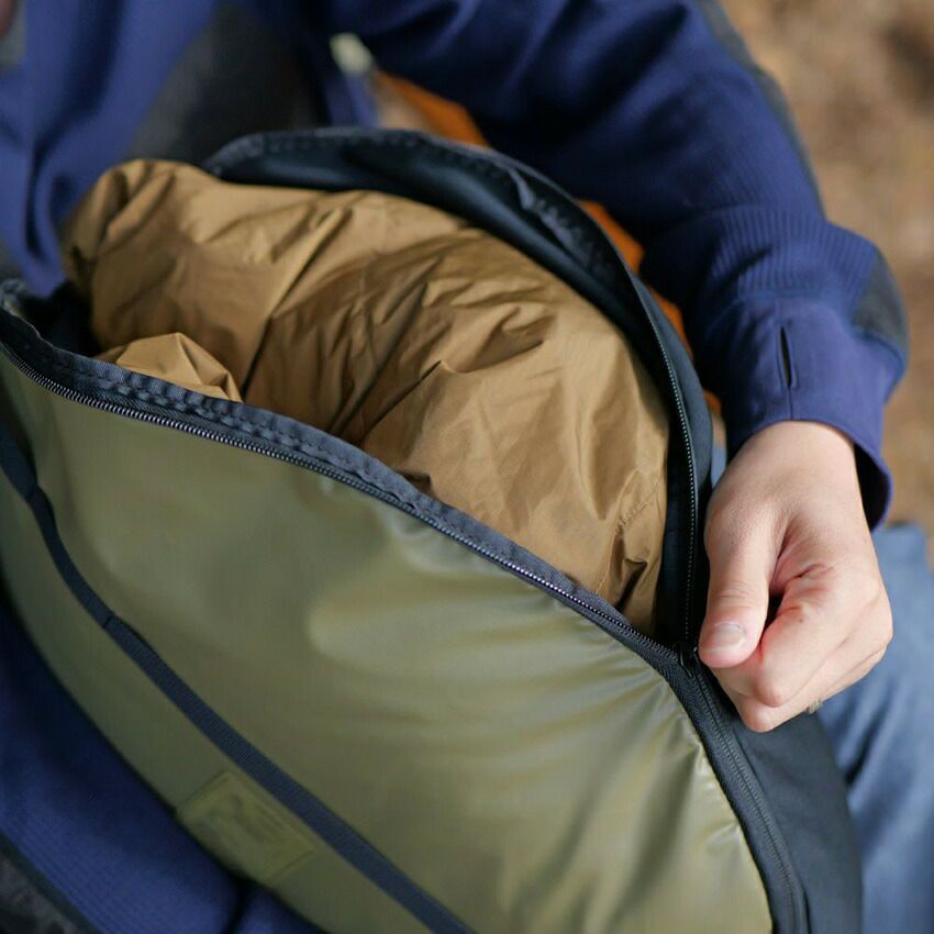 中に寝袋を収納することでクッションとしてお使いいただけます。※こちらのお色はカーキです。