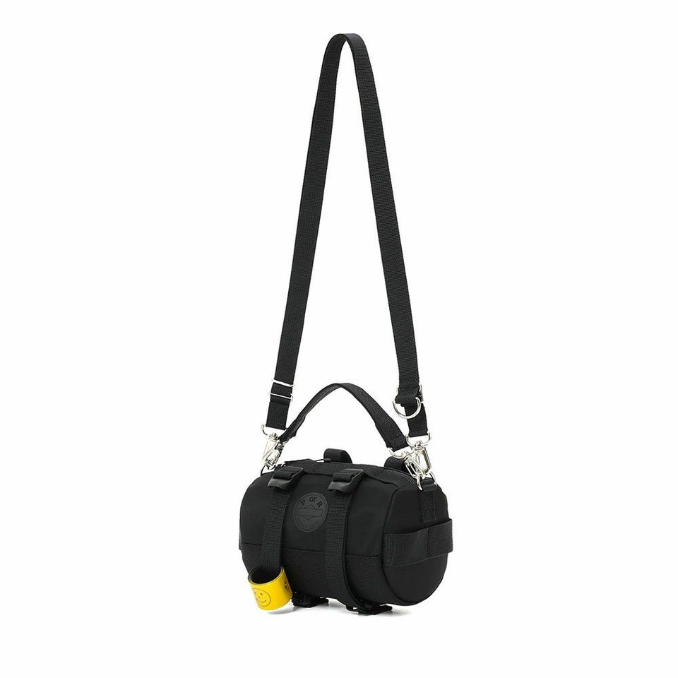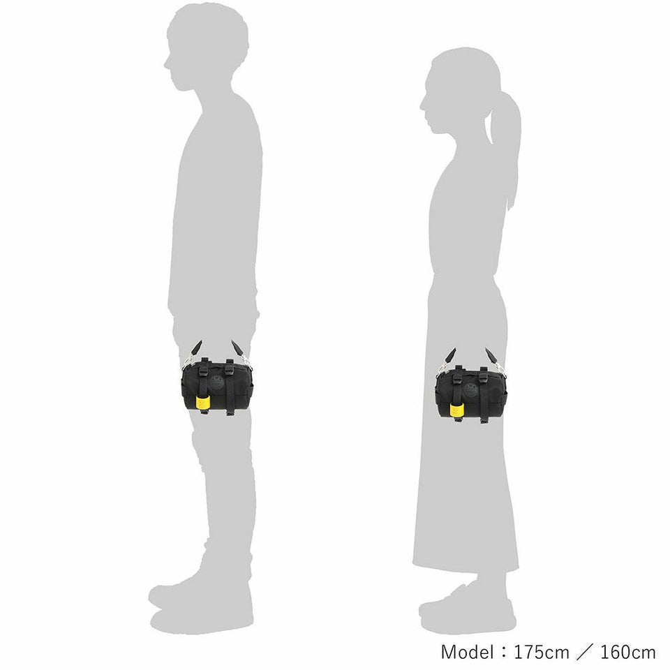 ロールバッグはウォレットやスマートフォンなど、身の回りの必需品を収納できるサイズで、普段使いやサイクリング時に使用することができる機能的なアイテムです。取り外し可能なハンドルとショルダーストラップが付属し、肩掛けだけでなく手持ちでも使える2WAY仕様です。背面に配したナイロンテープで自転車に直接取り付けることができ、ハンドルバー バッグとして使用することも可能です。