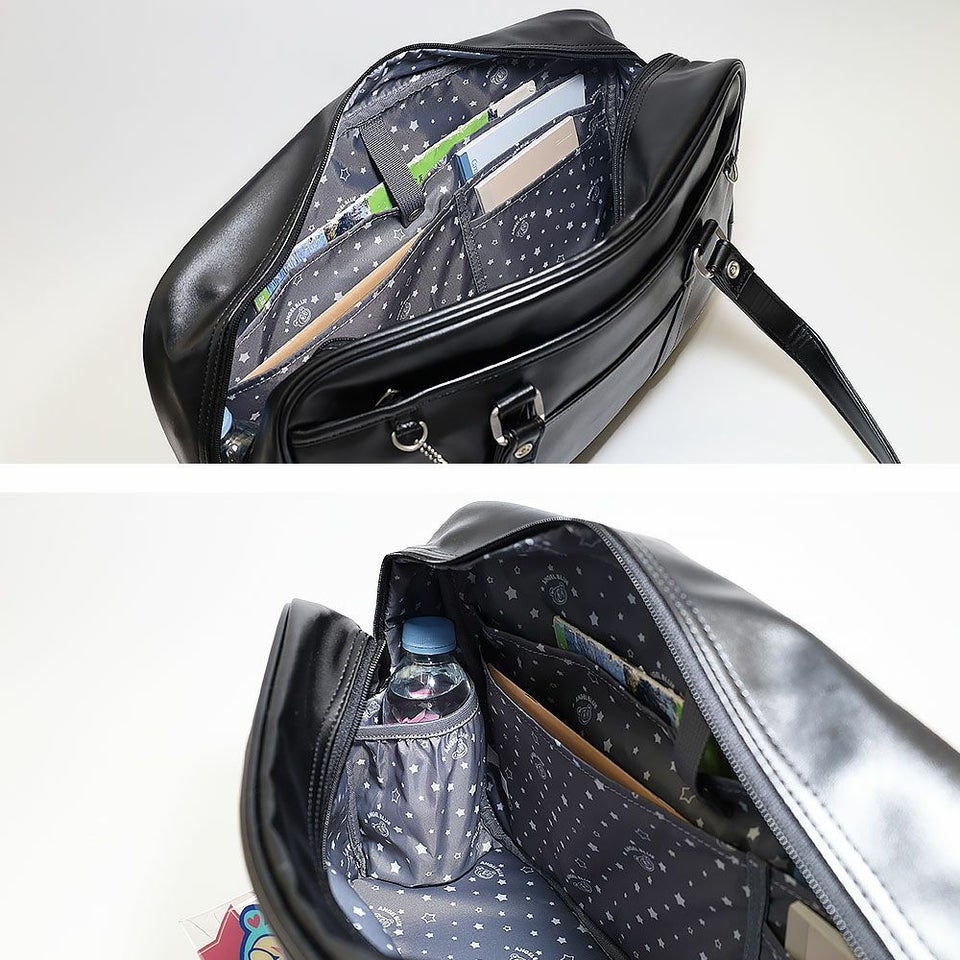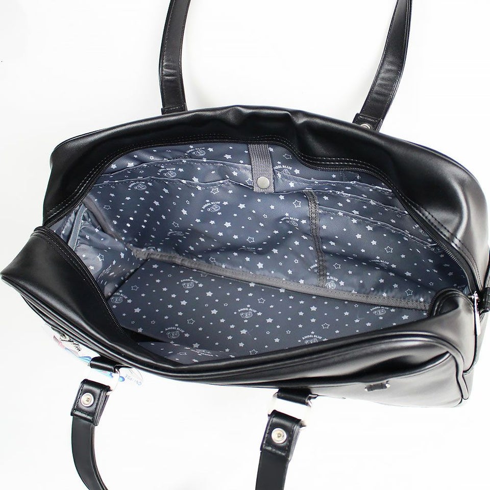 バッグの内側にはナカムラ君の顔を散りばめた星柄を採用し、開けるたびに気分が上がる楽しいデザインに仕上げています。外側だけでなく内側まで可愛さを詰め込むことで、AngelBlueらしい世界観を存分に楽しめる仕様です。細部にまで遊び心を感じる特別な内装です。
