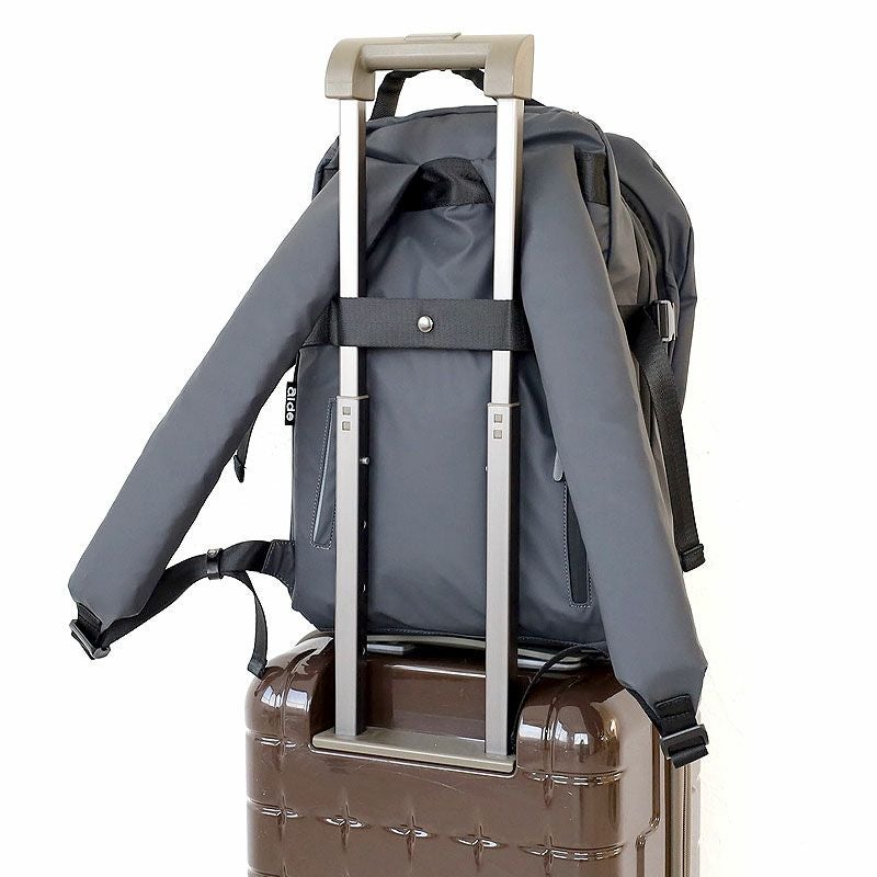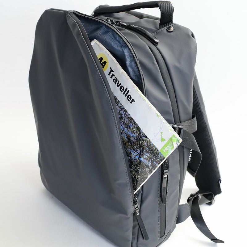 背面収納スペースにはPC収納できるオープンポケット、ファスナーポケットがあります。
