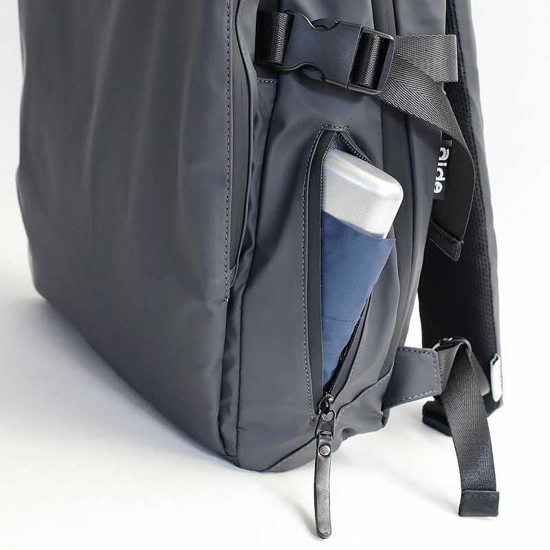 バッグ本体にはPUコーティングを施したナイロン素材を使用しており、上質なマットな風合いと防水性が備わっています。