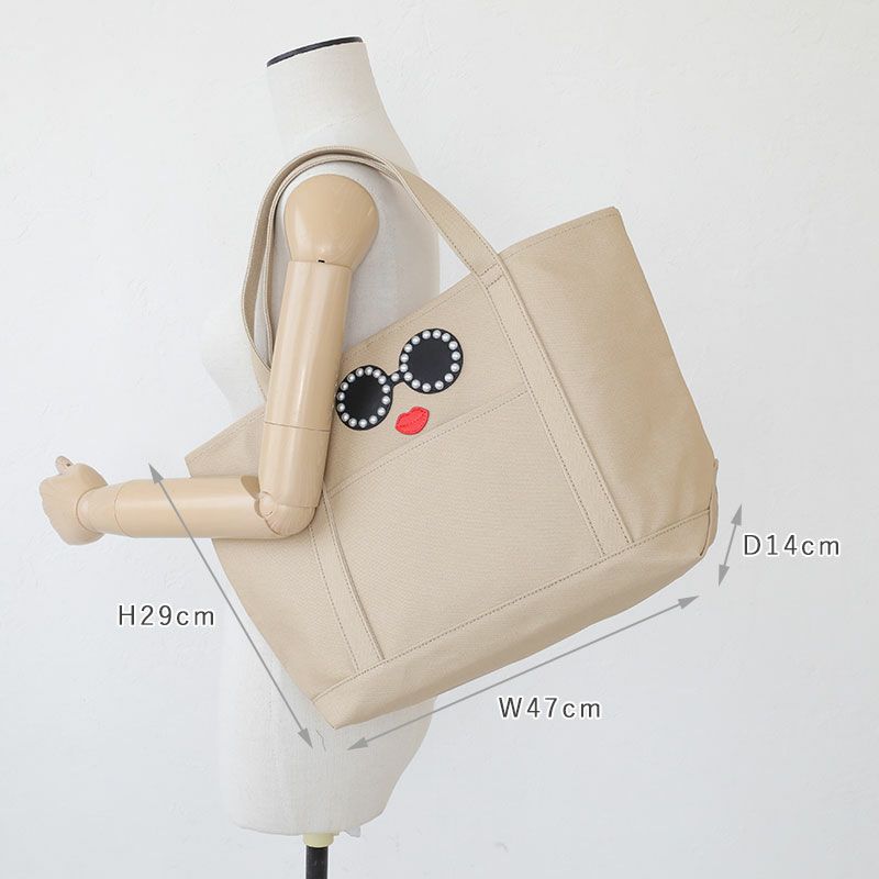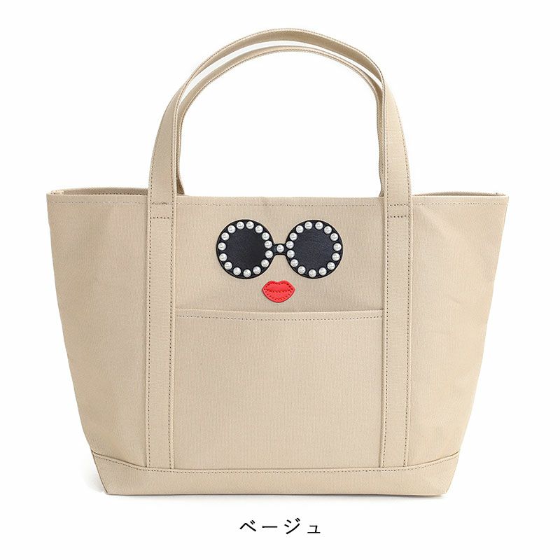 パールで縁取ったサングラスがとってもキュートな顔のトートバッグです。