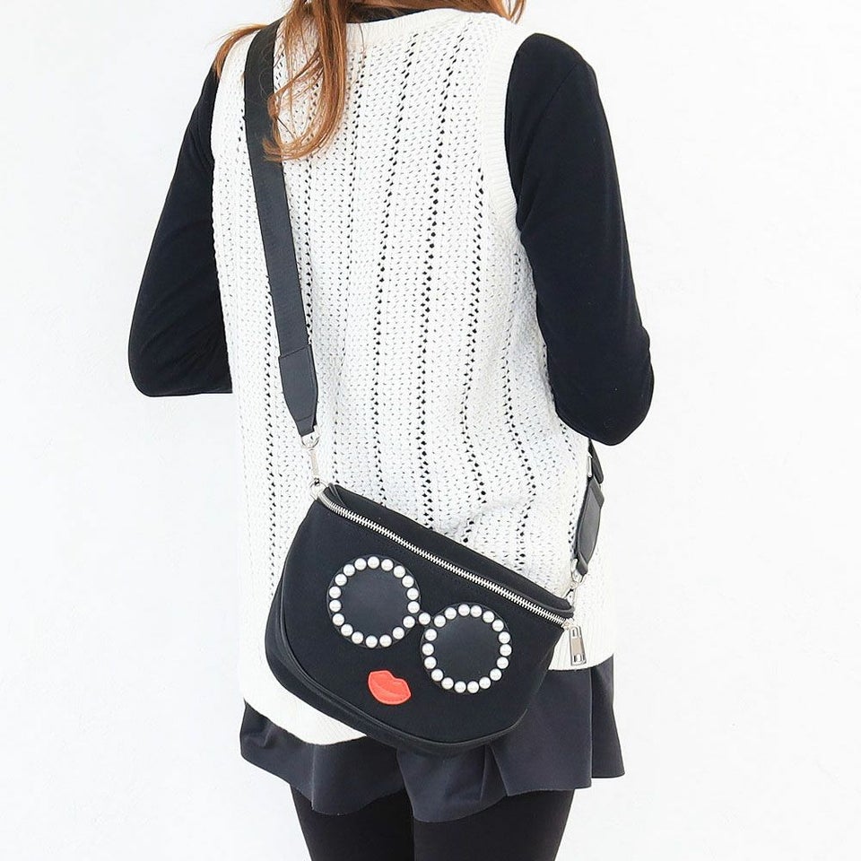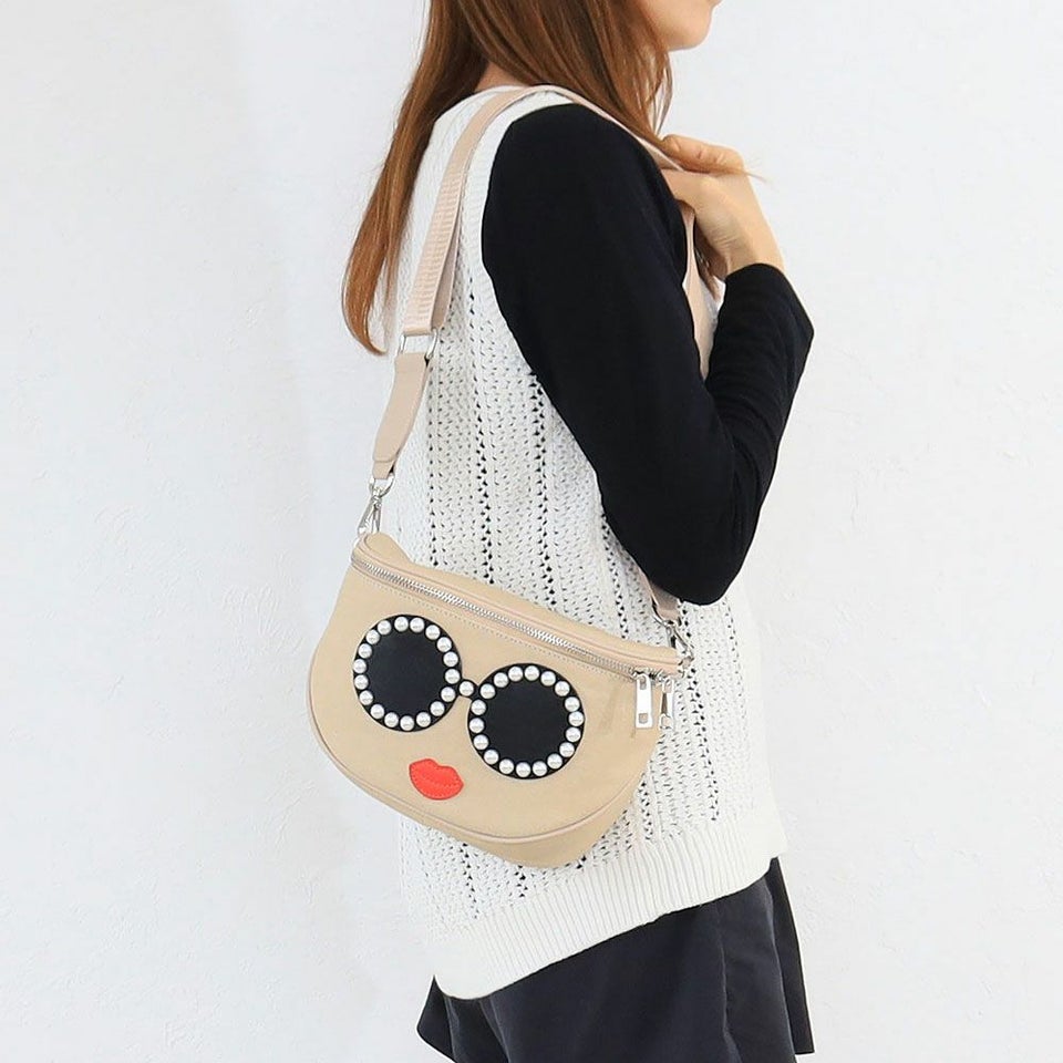 サングラスやスマイルをモチーフとしたバッグや小物で大人気のアジョリーから、 パールで縁取られたサングラスが特徴的なキャンバス地のボディバッグが登場。