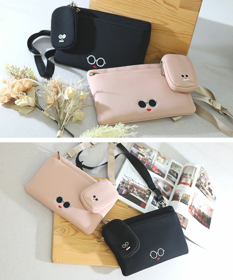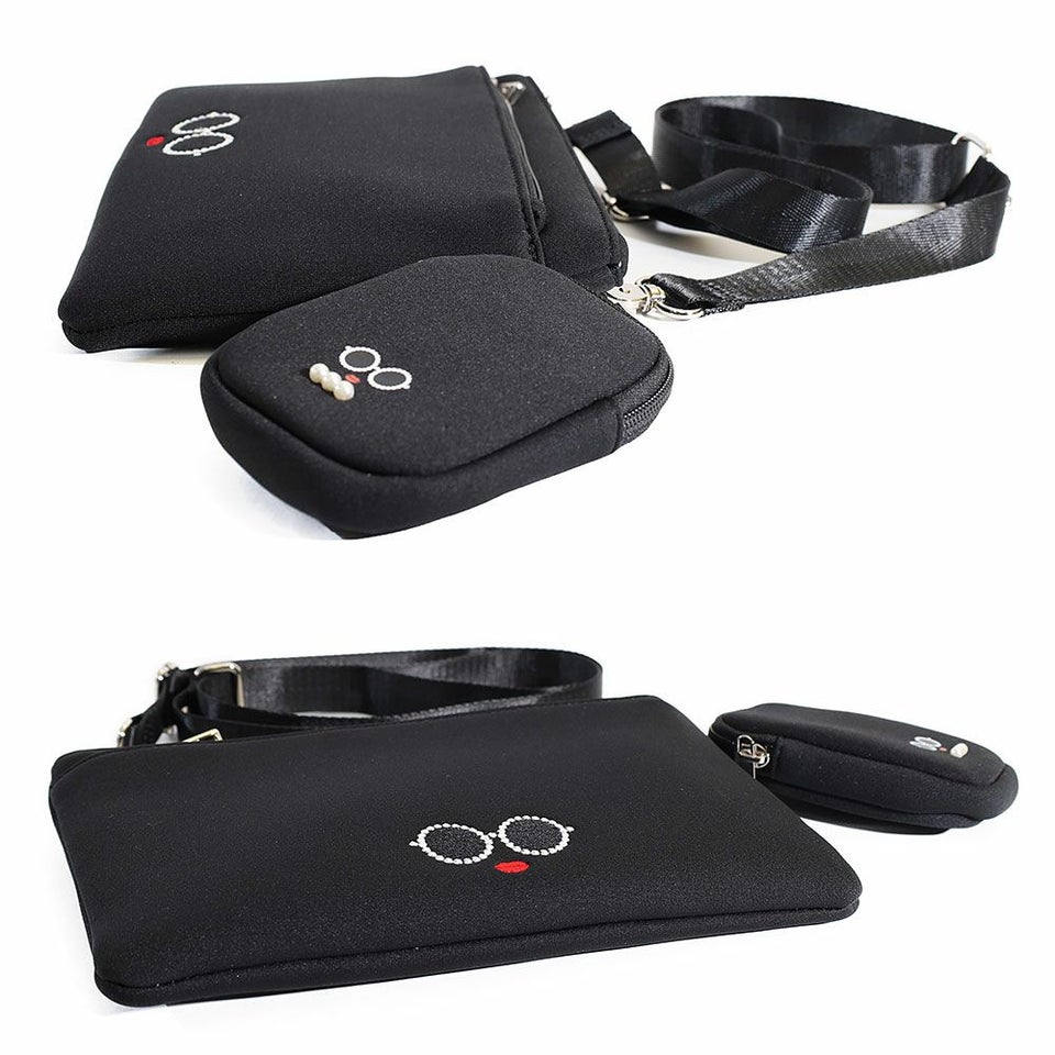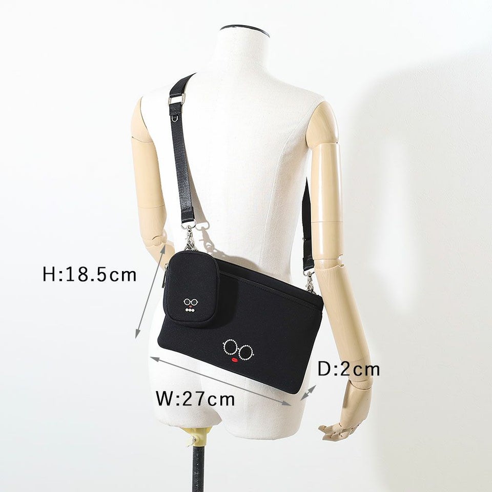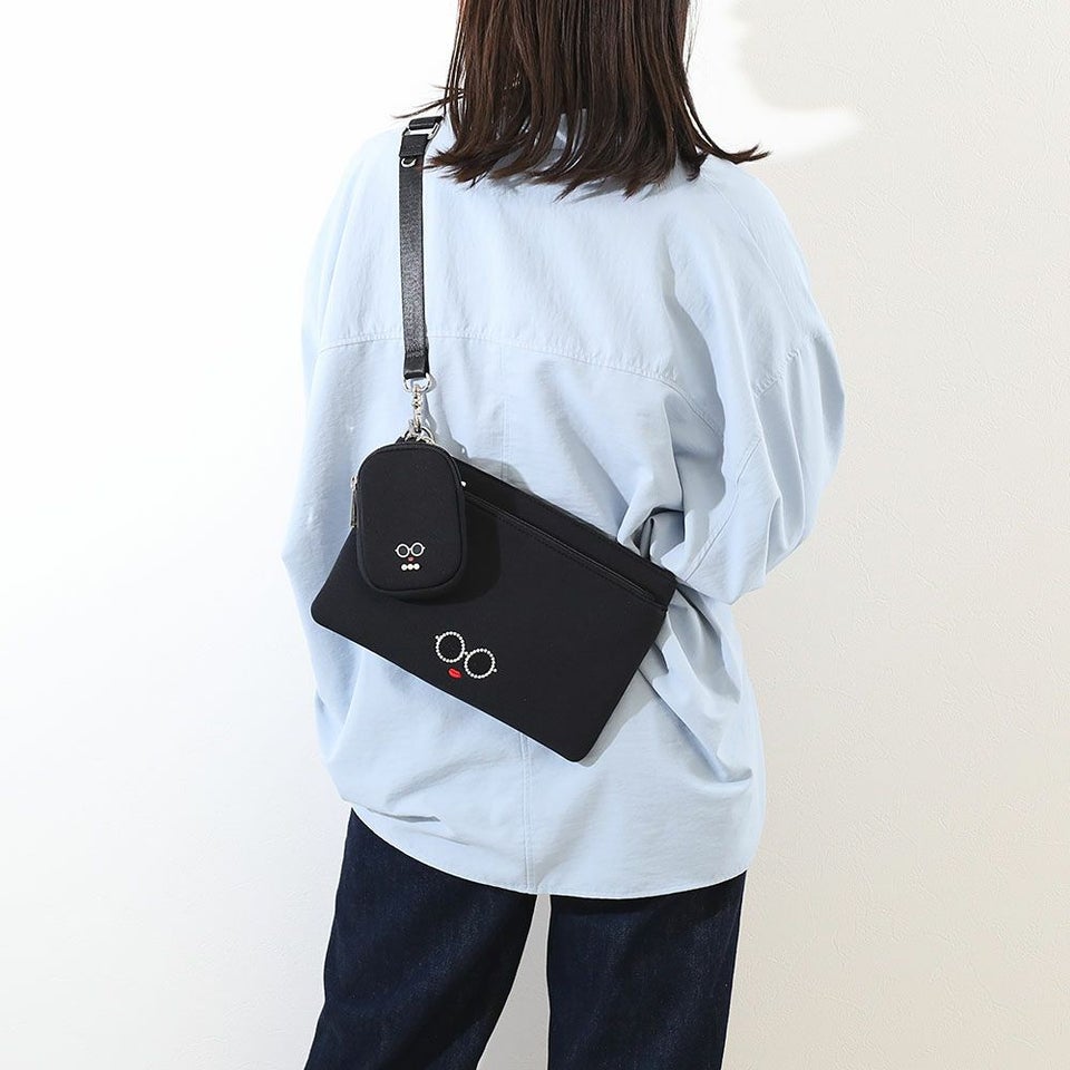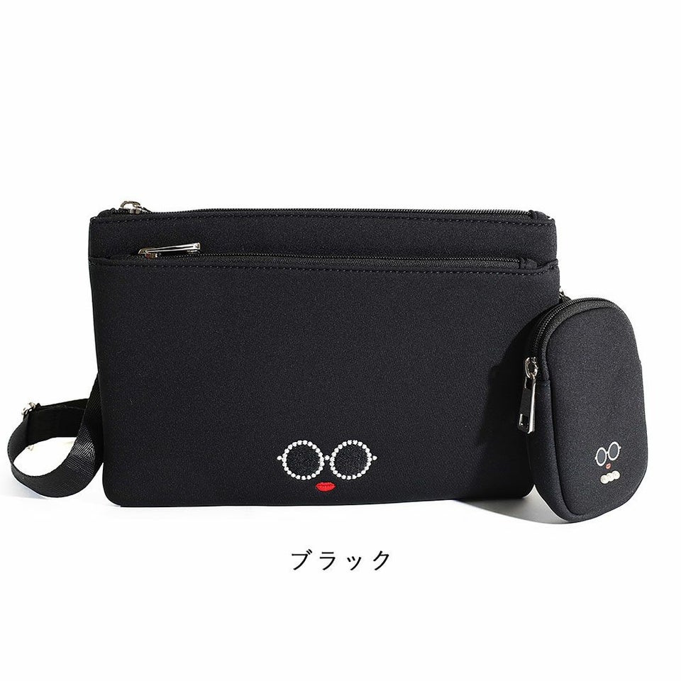 サングラス&赤いLIPがキュートな「パールサングラスちゃん」のミニポーチ付きスクエア型サコッシュ。