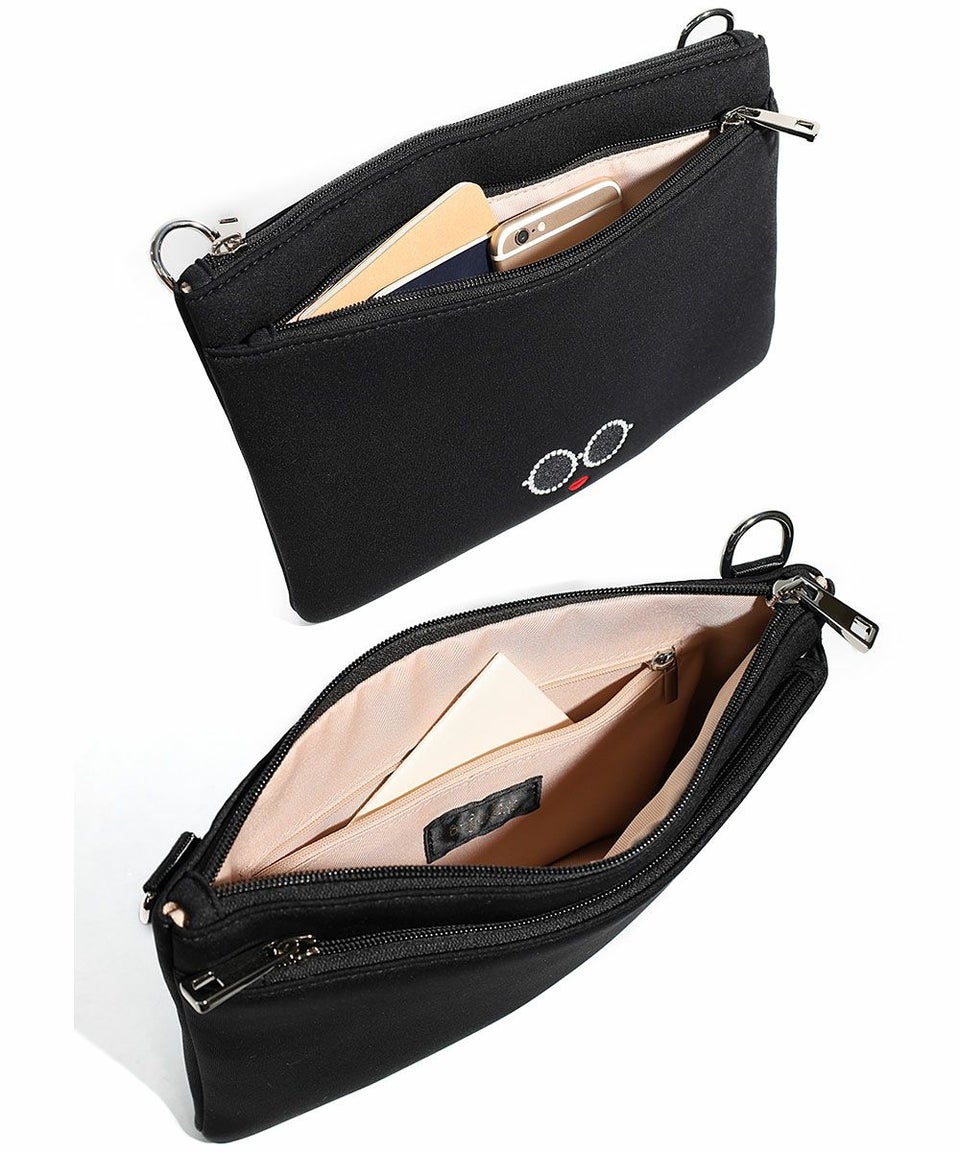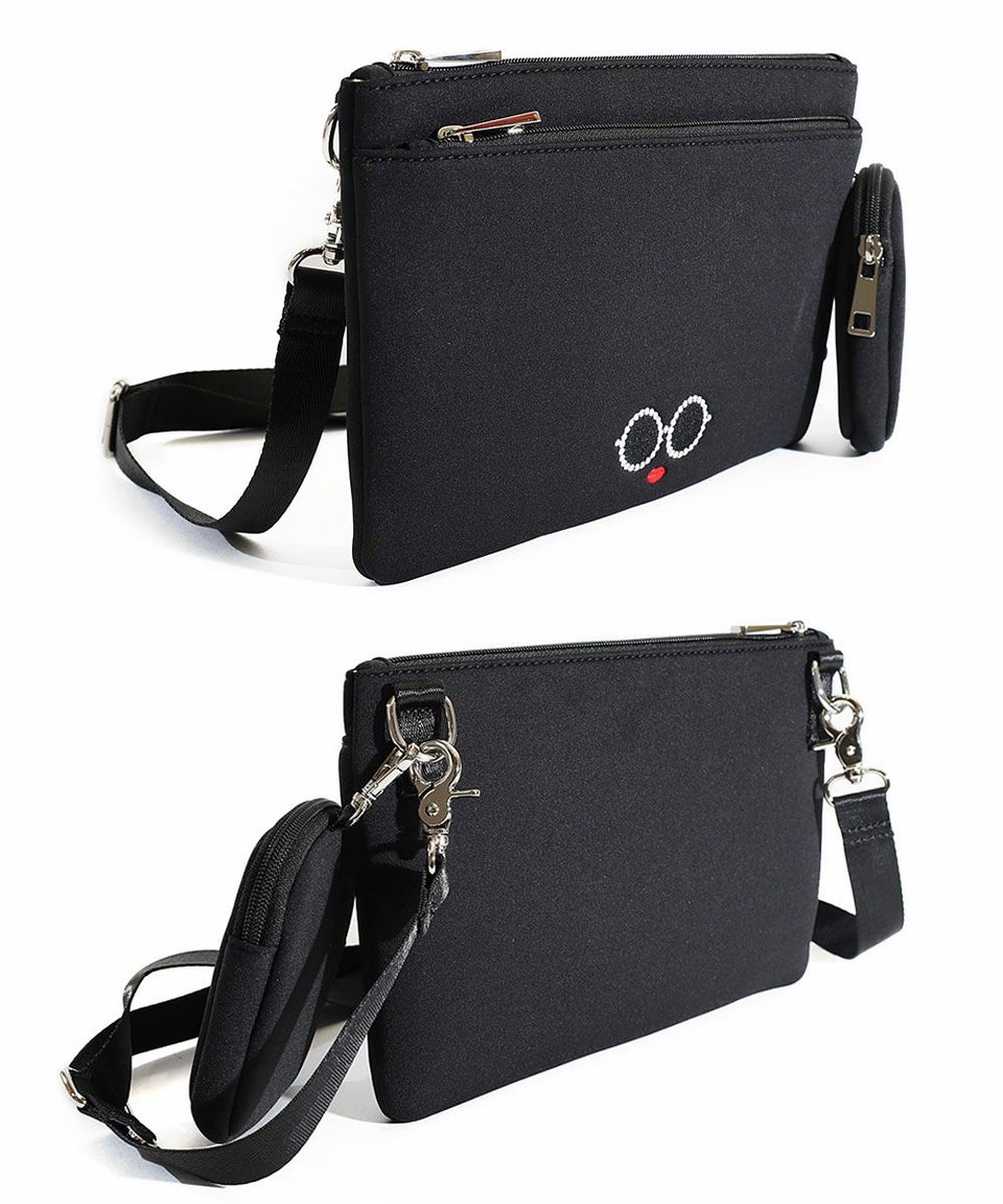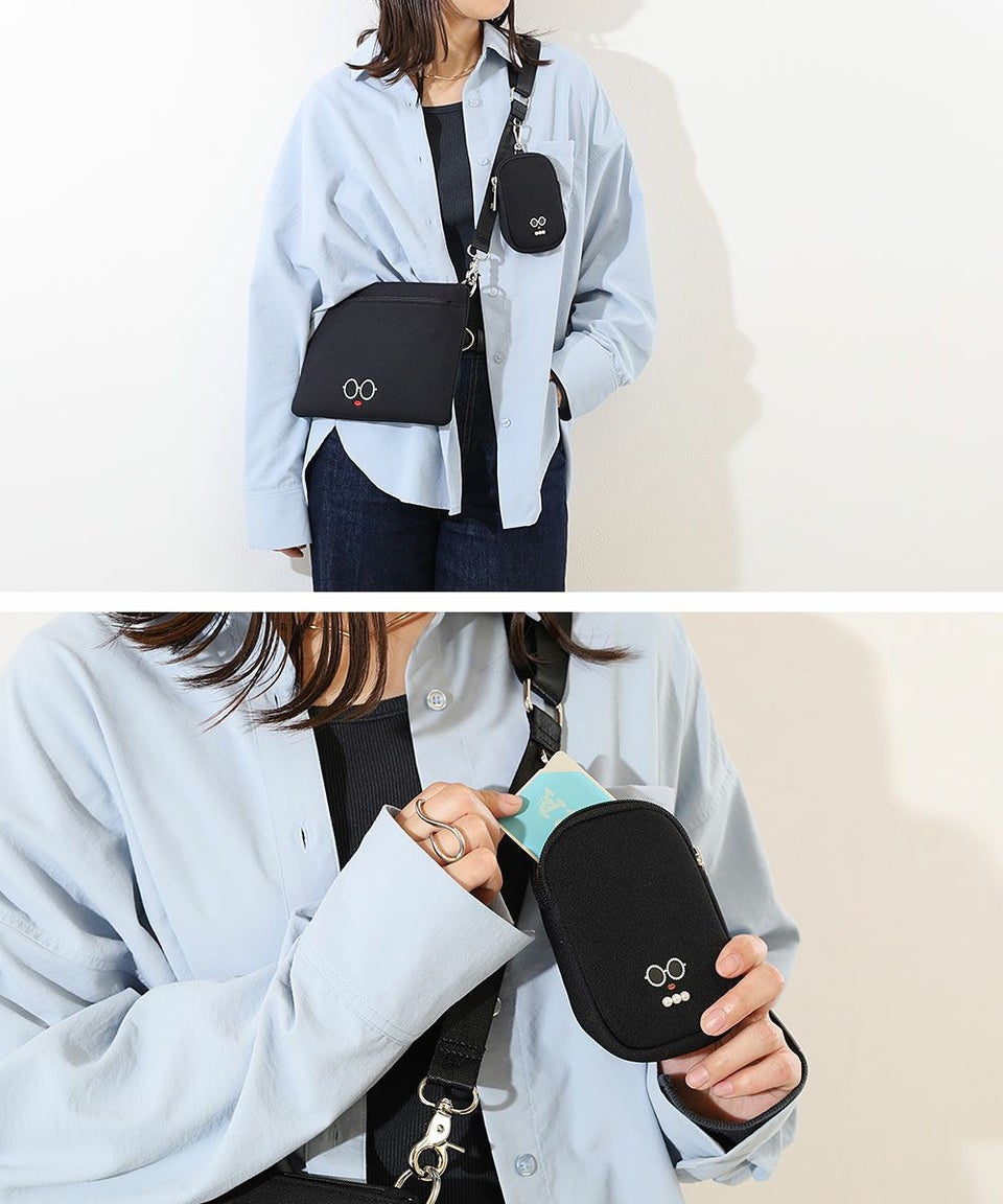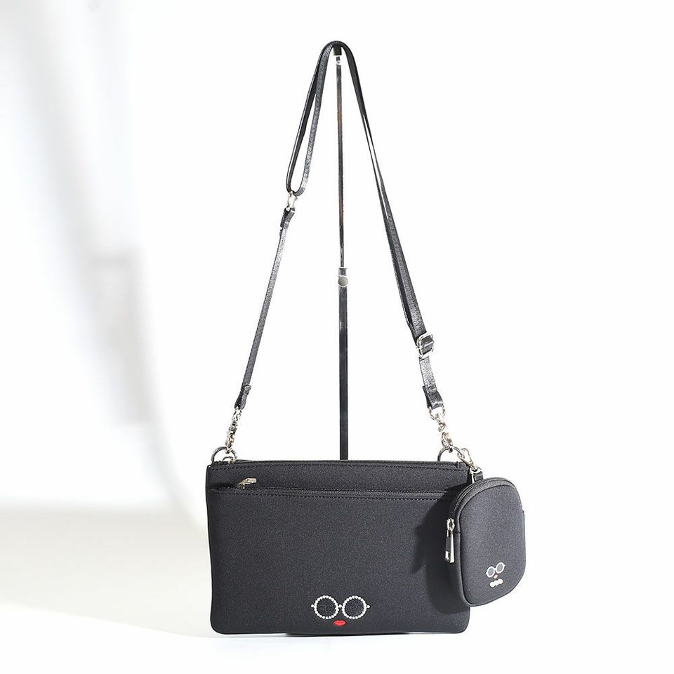 サングラス&赤いLIPがキュートな「パールサングラスちゃん」のミニポーチ付きスクエア型サコッシュ。