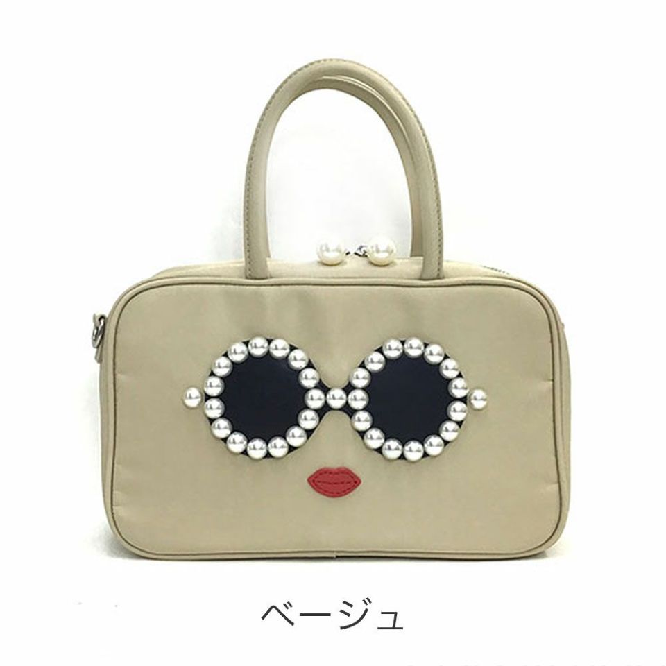 ※こちらのバッグはAJYM-476【パールサングラスちゃん ナイロン スクエアフェイスバッグ ミニ】より大きいサイズになっております。