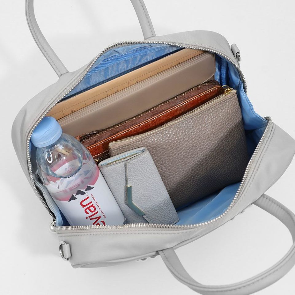 軽くて丈夫なナイロン素材だから、汚れてもサッとひと拭きでお手入れ簡単。ハンドバッグとしても使え、付属のショルダーベルトは長さ調節OKで、斜め掛け・肩掛けどちらも楽しめます!
