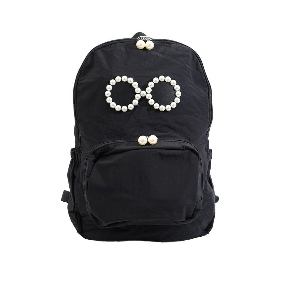 a-jolieのアイコンでもある“パールで縁取られたサングラス”がリュックになって登場。ユニークでキュートなフェイスデザインは、持つだけで気分が上がる存在感です。