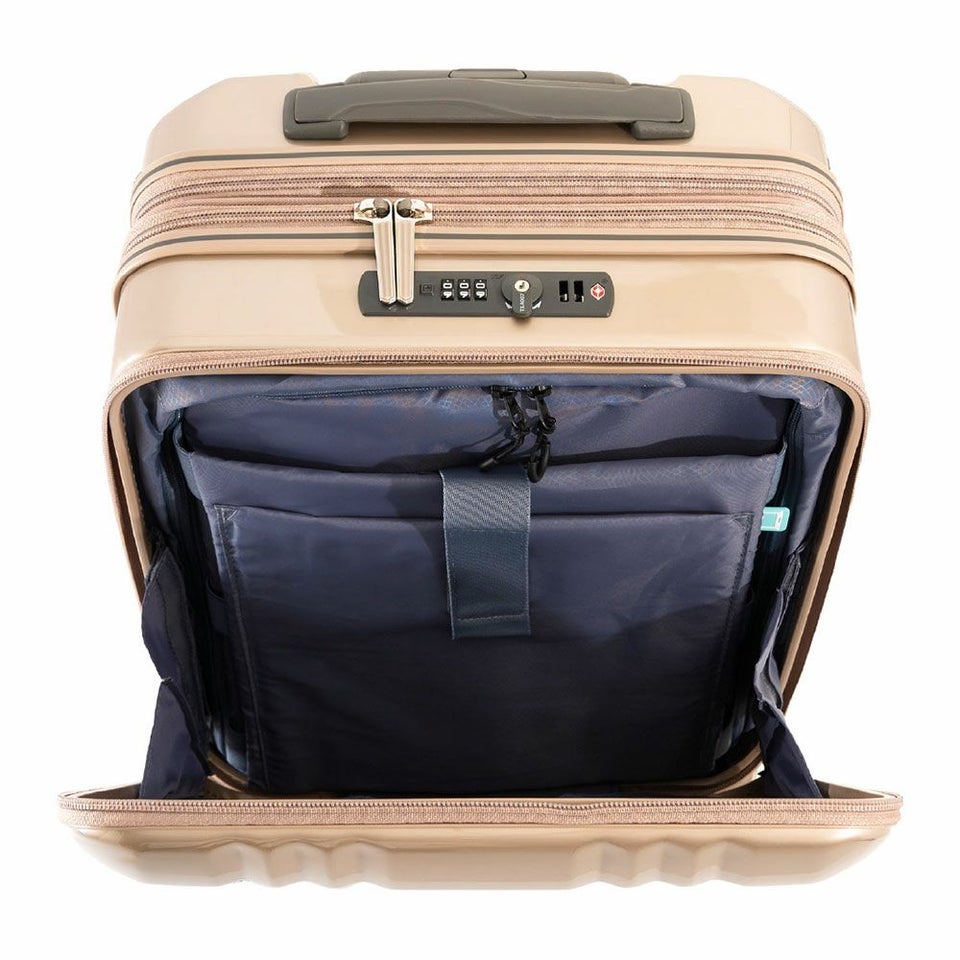 立てたままでも荷物を取り出せるフロントオープン構造を採用。移動中や待ち時間にも必要なアイテムをスムーズに取り出せます。ノートPC専用ポケットを備え、出張や旅行先でもスマートに対応。機能性と使いやすさを両立した、快適な移動をサポートするキャリーケースです。