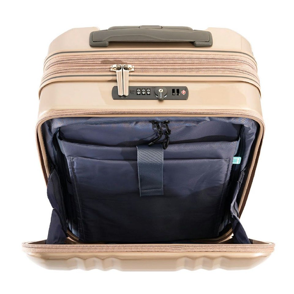 立てたままでも荷物を取り出せるフロントオープン構造を採用。移動中や待ち時間にも必要なアイテムをスムーズに取り出せます。ノートPC専用ポケットを備え、出張や旅行先でもスマートに対応。機能性と使いやすさを両立した、快適な移動をサポートするキャリーケースです。