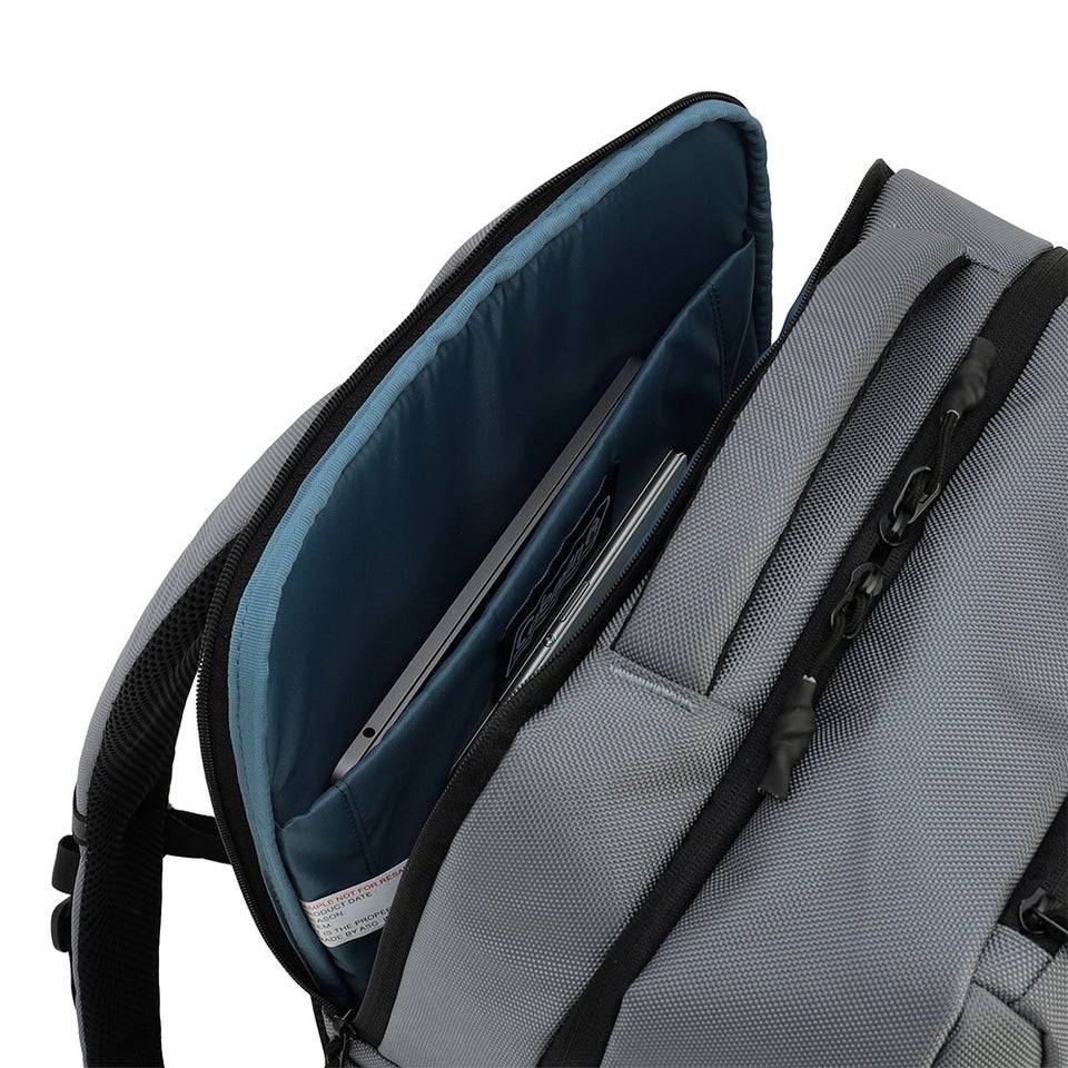 気室は2つに分かれ、背面側にはPCやタブレットを収納できるスリーブ、前面側には荷物をまとめて入れられるメイン収納を配置。用途別に分けて収納できるため、荷物が混ざらず、出し入れもスムーズです。