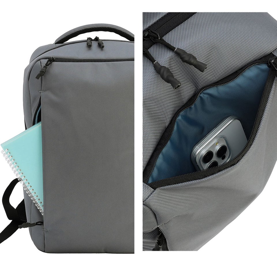 容量24Lは通勤通学に必要な荷物を無理なく収納できるサイズ感。書類やガジェット、日用品までバランス良く収まり、大きすぎずコンパクトすぎない使いやすさが魅力です。