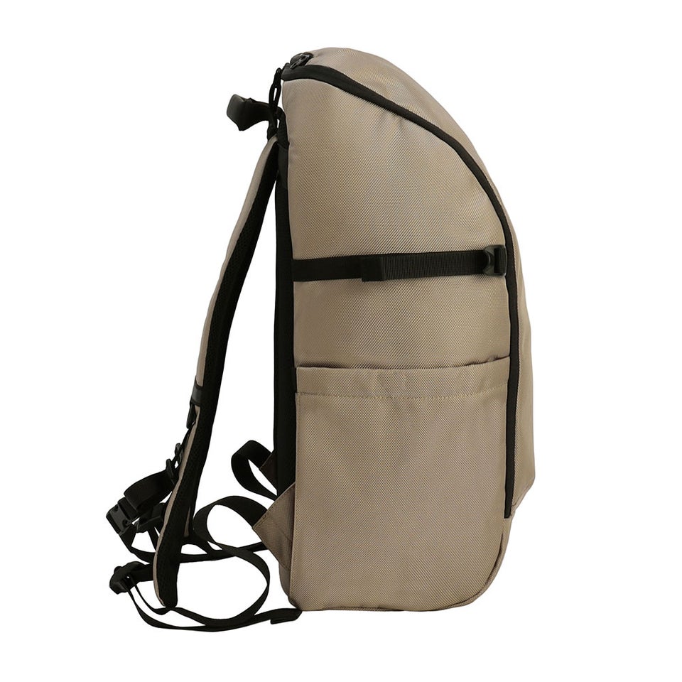 耐久性に優れた1680D素材を使用。背面パネルとショルダーベルトにはメッシュ素材を採用し、蒸れを軽減します。フォーム入りのショルダーベルトが肩への負担を抑え、長時間でも快適です。