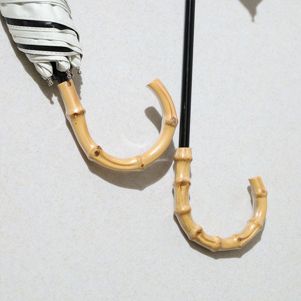 傘生地には防水撥水加工を施し、縫製には撥水糸を使用していますが、激しい雨や長時間のご使用では雨が染み込むことがございます。また飾り加工部分(刺繍、ステッチ、パイピング、テープ等)はデザインの特性上、完全な防水撥水加工が難しい場合があり雨が染みやすいのでご注意下さい。
