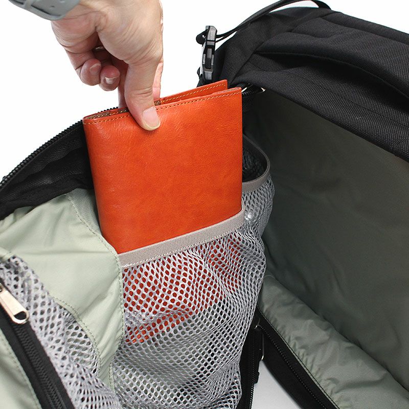 メッシュポケットやキークリップもあり、取り出しやすく設計されています。