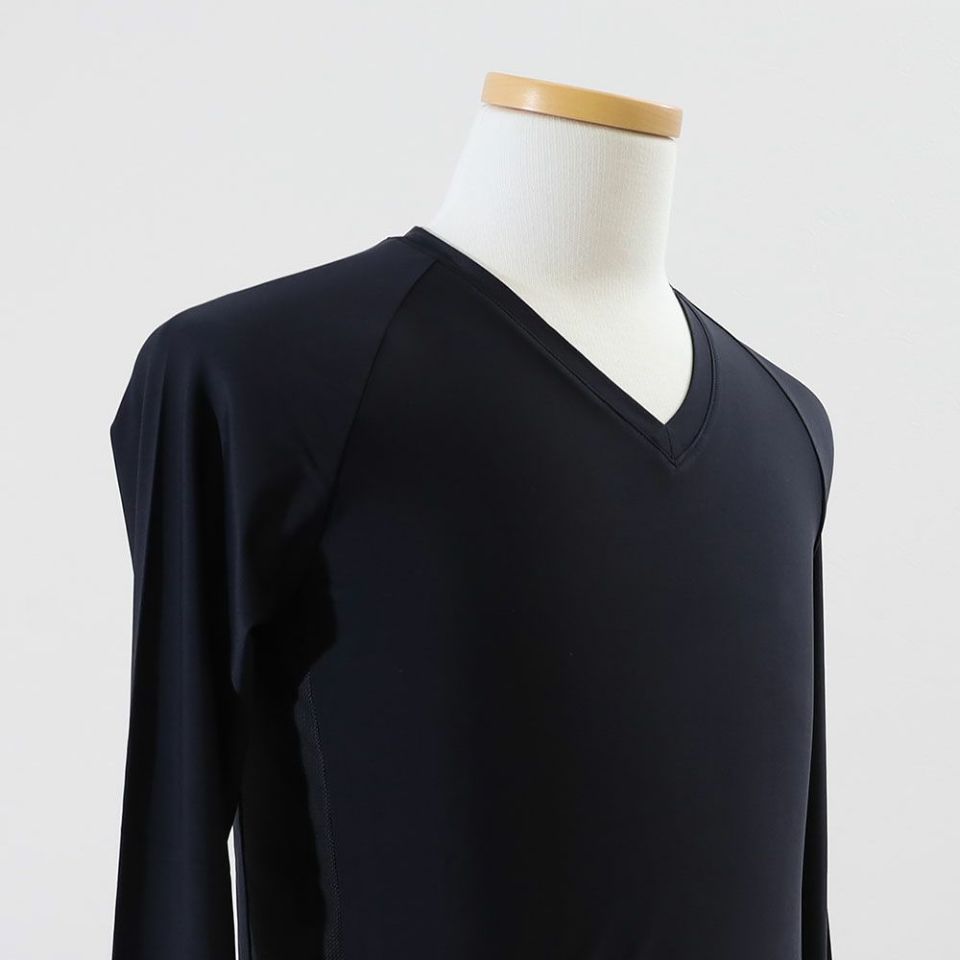 ポロシャツやTシャツと重ね着しやすいVネック仕様。見えにくいインナーとして活躍します。