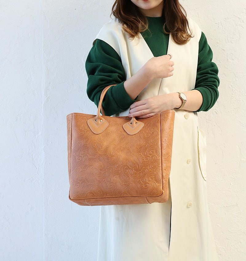 ■型押しペイズリーレザーが特長のクラシックスタイルなバッグ。