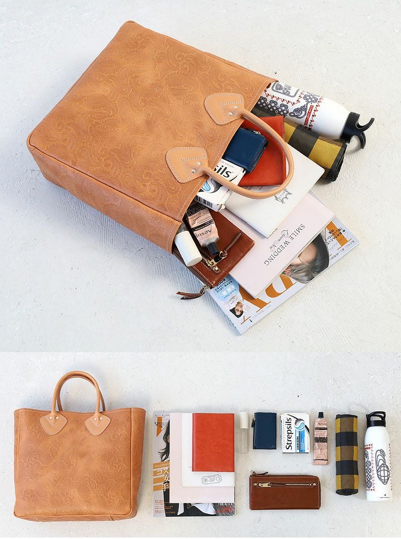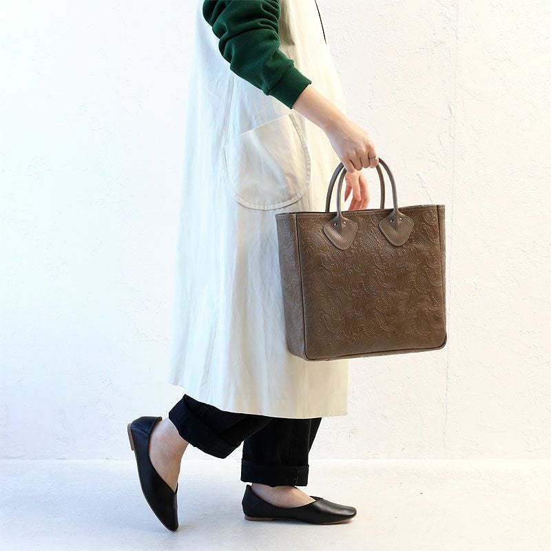 型押ししたボディーとプレーンな持ち手のエイジングが楽しんでもらえます。